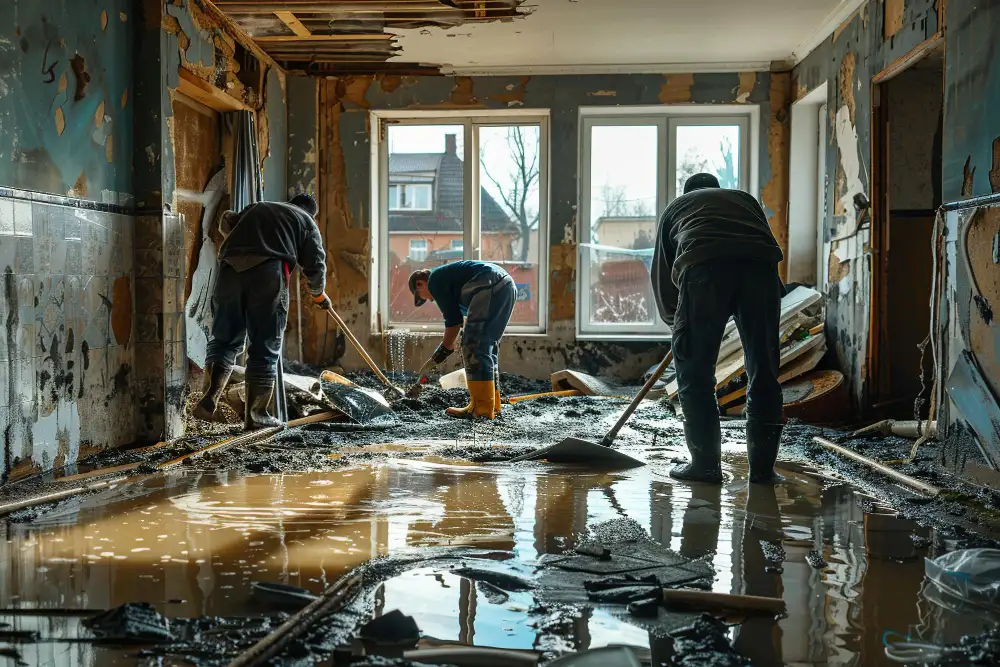 Rapid extraction of standing water with industrial pumps and drying equipment.